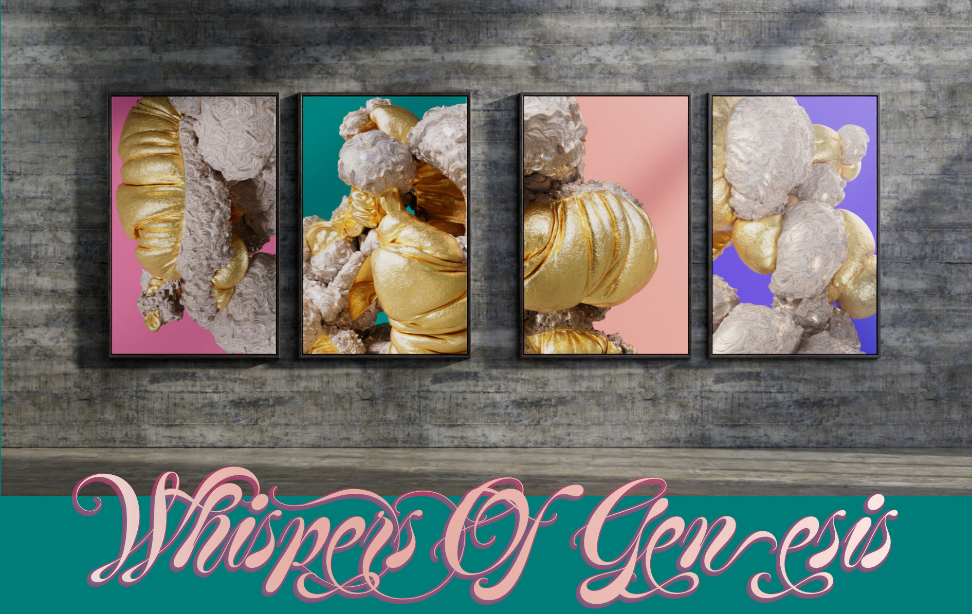 Whispers of Genesis explores the subtle moment where ideas are awaken. That spark before clarity, the breath before creation takes place. Sculptural abstractions of thought caught mid-emergence are represented throuout four canvases.